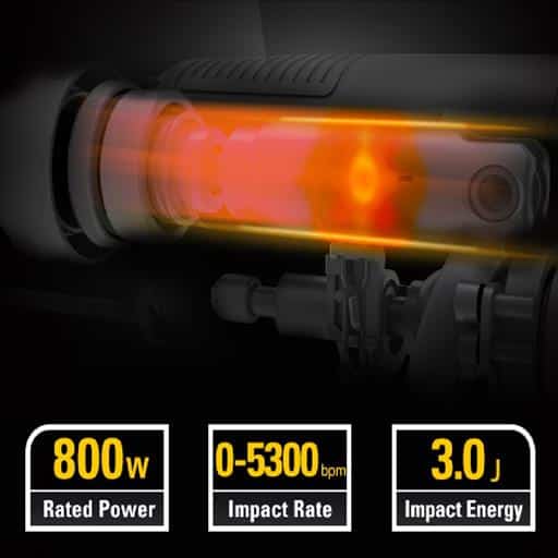 Four functions: Drill, Hammer drill, Bit rotation, Chisel