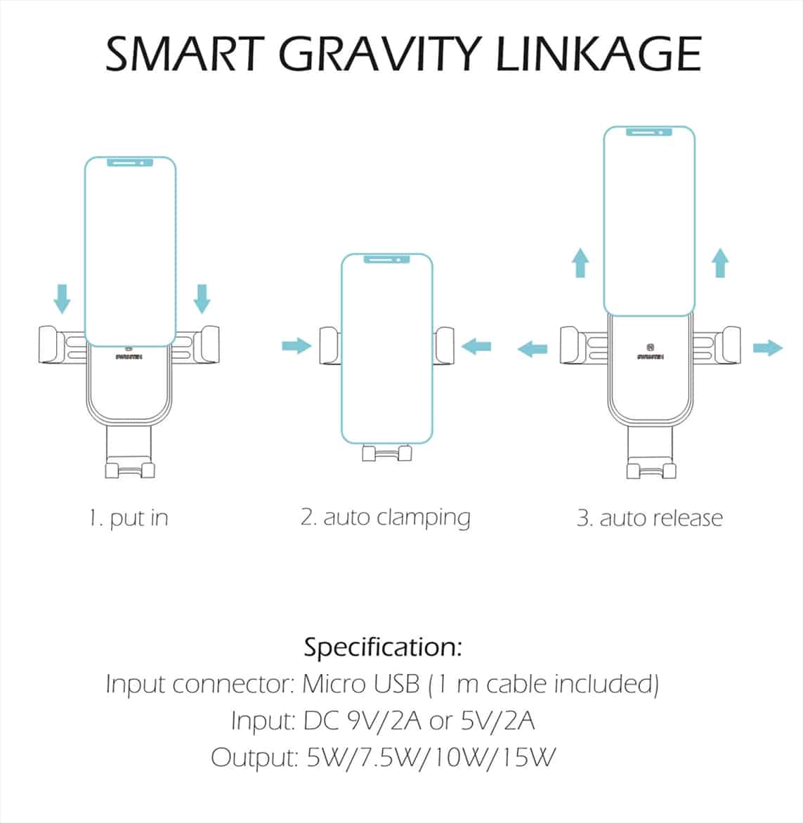 SWISSTEN AIR VENT CAR HOLDER S-GRIP 15W WIRELESS GRAVITY GW1-AV3 3.5-6.5