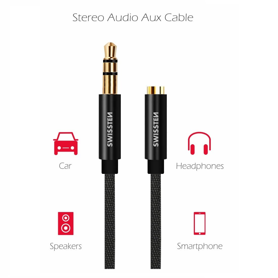 SWISSTEN AUDIO 3.5MM JACK MALE TO JACK FEMALE 1.5M BLACK