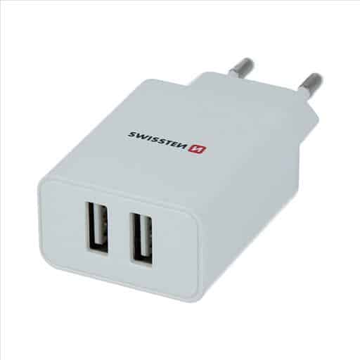 SWISSTEN CHARGER 2 USB 2.1A WHITE UK PLUG