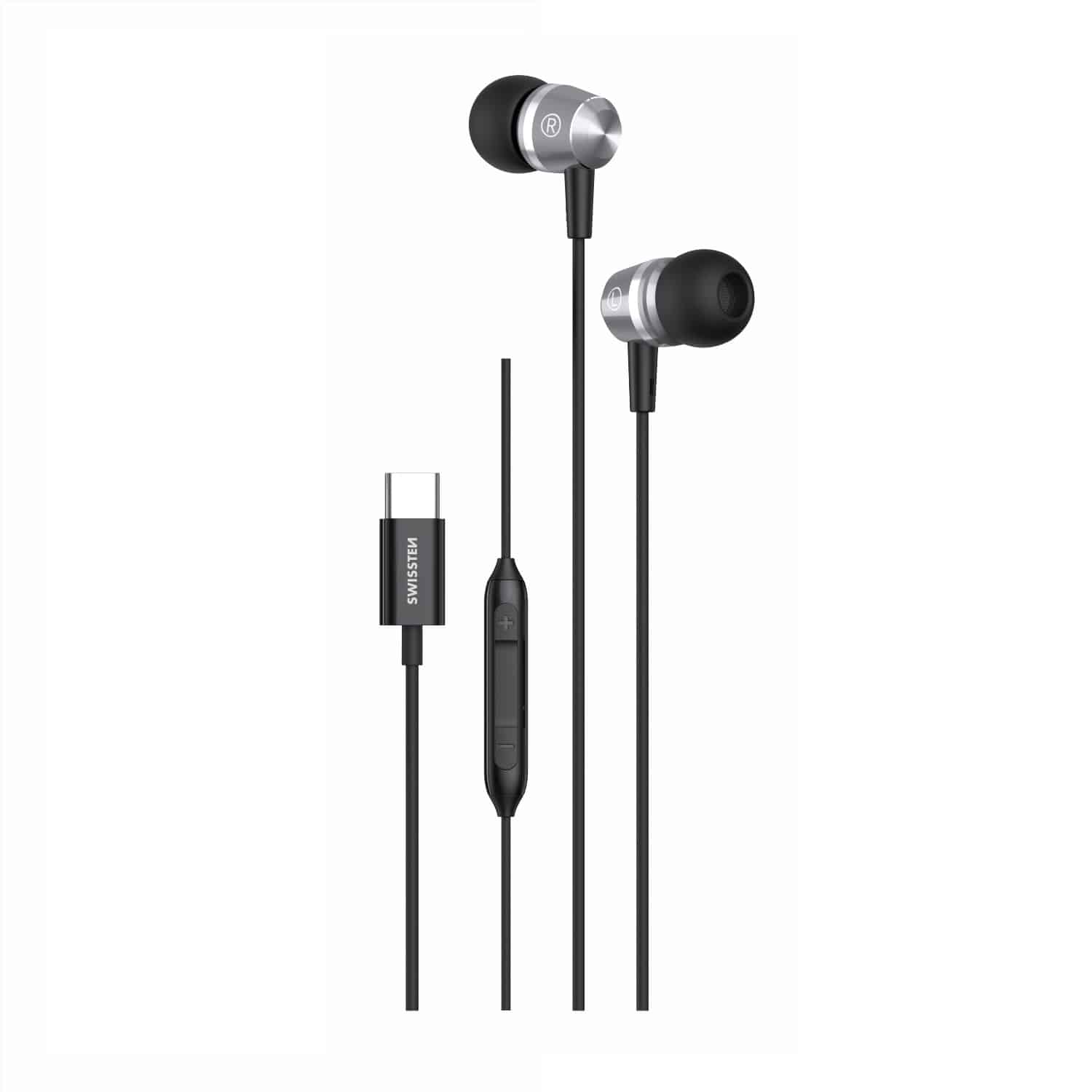 SWISSTEN USB-C METALLIC EARPHONES BLACK FOR ALL SMARTPHONES